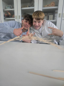Am 27.10. haben die SuS der 10. Klasse im Kurs NT die Leonardo – Brücke mit viel Geduld und Fingerspitzengefühl rekonstruiert. Nach anfänglicher Skepsis, wie sich Holzstäbchen selber tragen sollen, wurde probiert und recherchiert. Am Ende hatten einige Gruppen akribisch hantiert und immer längere Brücken nachgebaut. Kreativität, Geduld und Teamarbeit führten zum Erfolg.